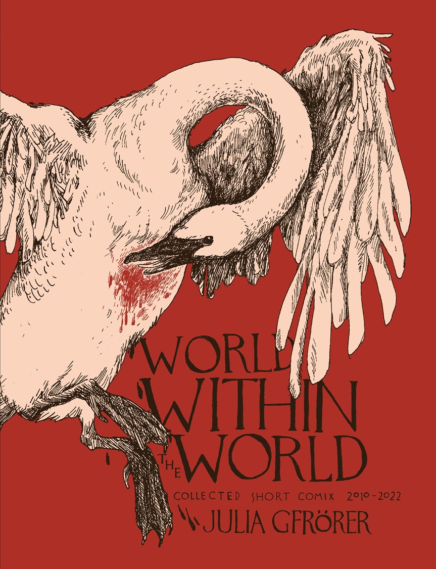 World Within the World features 30 of Gfrörer’s short stories, culled from a decade of writing and drawing at the bleeding edge of the art form. Her tales of desire, despair, and the universal need for connection span centuries, continents, and cultures from prehistoric teenagers in love to Christian martyrs in the making to modern-day vampires on the make. Along the way her bold, confident work leads the reader to some unexpected places, whether erotica inspired by the works of Edgar Allan Poe or a post-apocalyptic parody of Frasier.